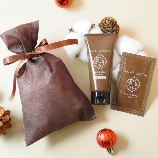 自分用にはもちろん、ちょっとしたお返しやプレゼントにも最適な巾着やボディケアの試供品付き☆